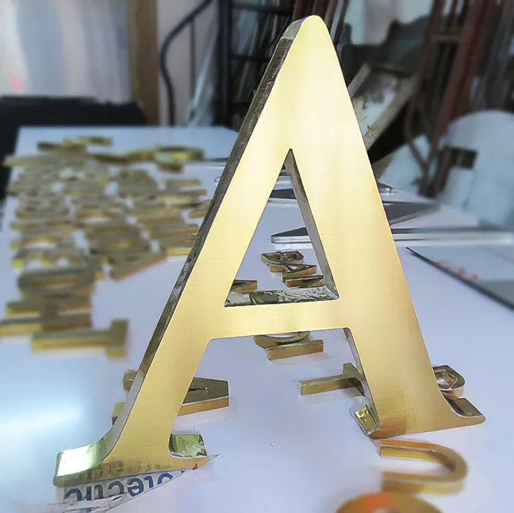 Chữ inox mạ vàng gương là lựa chọn hàng đầu cho những ai yêu thích vẻ đẹp hiện đại và sang trọng. Đặc điểm nổi bật của loại chữ này là bề mặt được đánh bóng gương trước khi mạ, tạo hiệu ứng phản chiếu ánh sáng tuyệt vời. Dưới ánh đèn, chữ lấp lánh rực rỡ, thu hút mọi ánh nhìn.